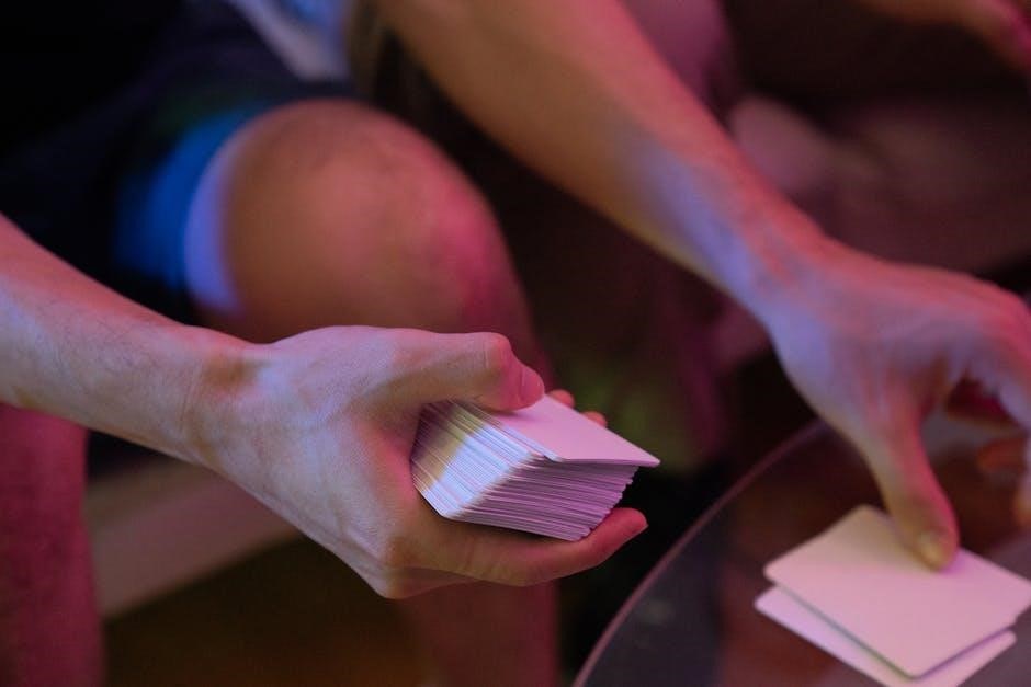 While the game can technically be adapted for other player counts, these configurations are less common and may require adjustments to the dealing and scoring procedures; The core gameplay is designed around the cooperative element of two-person teams, fostering strategic communication and shared success.